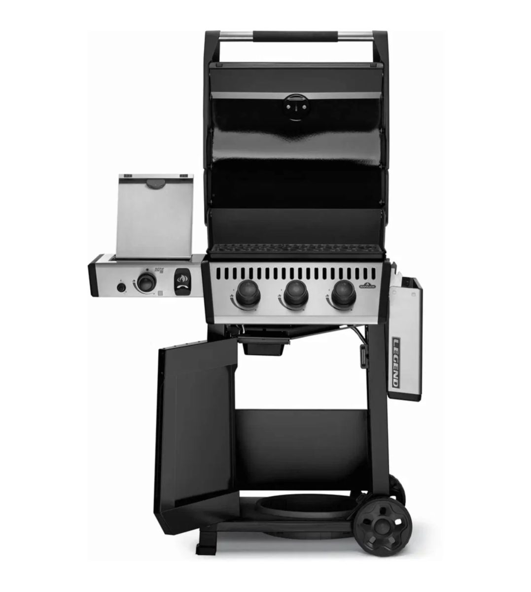 Стильное покрытие крышки гриля, ручка Soft-touch, пластины-испарители с фарфоровым покрытием - отличительные особенности модели Legend-365 SIB. Надежная система мгновенного поджига JETFIRE™ позволяет быстро и легко зажигать горелки, а пластины-испарители с фарфоровым покрытием обеспечивают равномерную передачу тепла. Правый столик складывается для компактного хранения. Широкие всепогодные колеса позволят с легкостью перемещать его по любой поверхности. В закрытом основании гриля расположено встроенное посадочное место для газового баллона, в котором баллон плотно фиксируется, а это значит, что при транспортировке гриля баллон останется на месте.