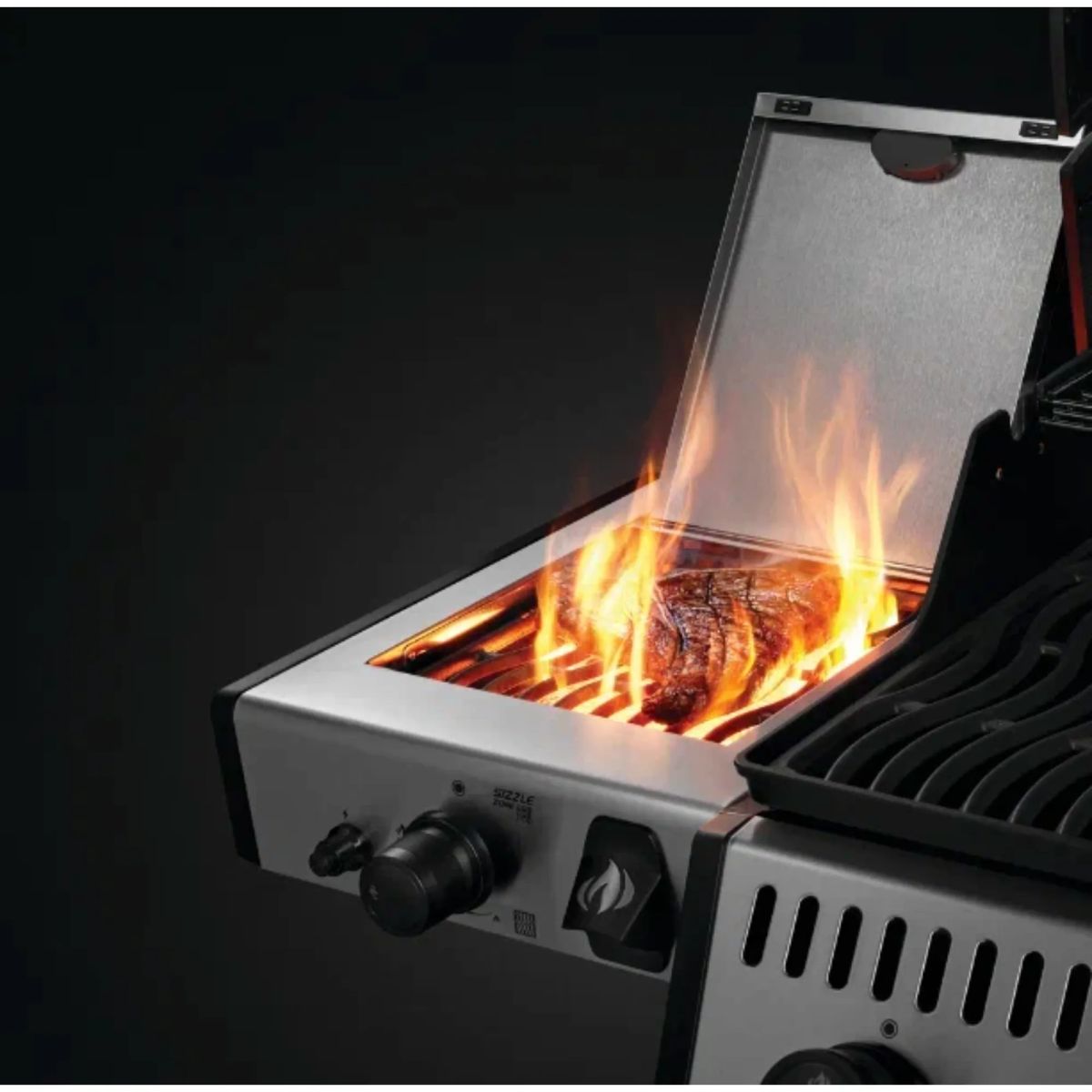 Боковая инфракрасная горелка SIZZLE ZONE сможет зажарить стейк, или приготовить на воке в азиатском стиле лапшу при экстра сильном жаре, что-бы все витамины и соки сохранить в продукте и не терять их во время приготовления