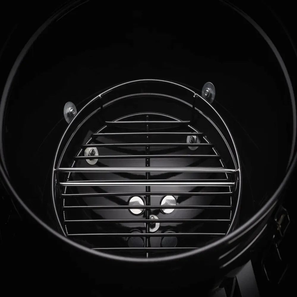 - Регулируемые вентиляционные отверстия контролируют поток воздуха и температуру угля для копчения и приготовления на гриле при высокой температуре;