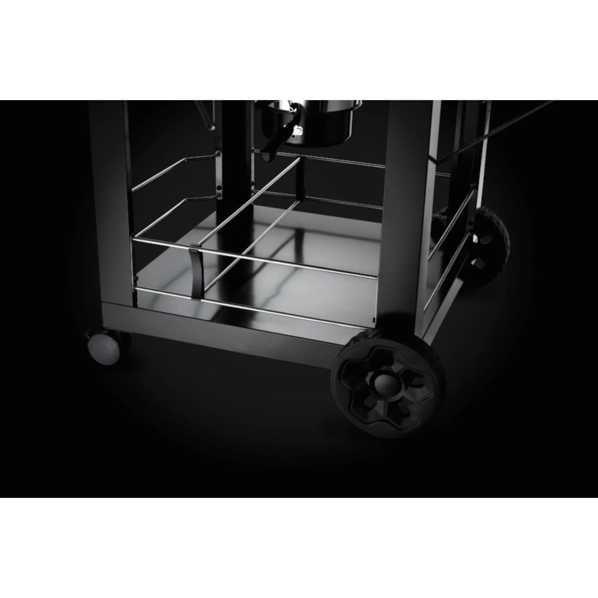 Угольный гриль Napoleon PRO22K-CART-3 станет главным любимцев всех ценителей барбекю. Его устойчивая конструкция с двумя всепогодными колесами позволит легко перемещать гриль в любое удобное для Вас место за специальную крепкую ручку на основании. Гриль оснащен чугунной барбекю решеткой, которая легко регулируется по высоте в трех положениях. Поднимающиеся боковины решетки облегчают доступ к углю при «прямом» и «косвенном» методе приготовления. Конструкция позволяет поворачивать барбекю котел на 360° градусов вокруг собственной оси внутри стола. Встроенный в крышку термометр позволит Вам держать процесс приготовления блюд под контролем. Складывающееся боковое пристолье позволит держать рядом все необходимые продукты, а крючки аксессуары. Нижняя часть гриля оборудована удобной корзиной для хранения различных аксессуаров или чехла.