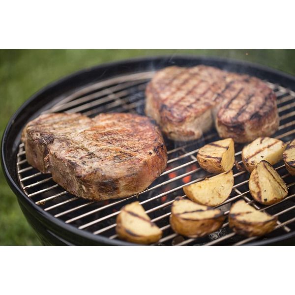 Жаропрочные котёл и крышка, покрытые фарфоровой эмалью, позволяют готовить в любую погоду и с легкостью очищать гриль